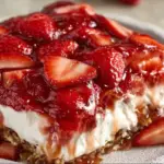 This Strawberry Delight with Pecan Cream is a light, fluffy, and refreshing no-bake dessert layered with a buttery graham cracker and pecan crust, creamy whipped filling, and sweet strawberry gelatin topped with fresh fruit. Easy to make and perfect for any occasion, it’s a crowd-pleaser you’ll return to again and again.