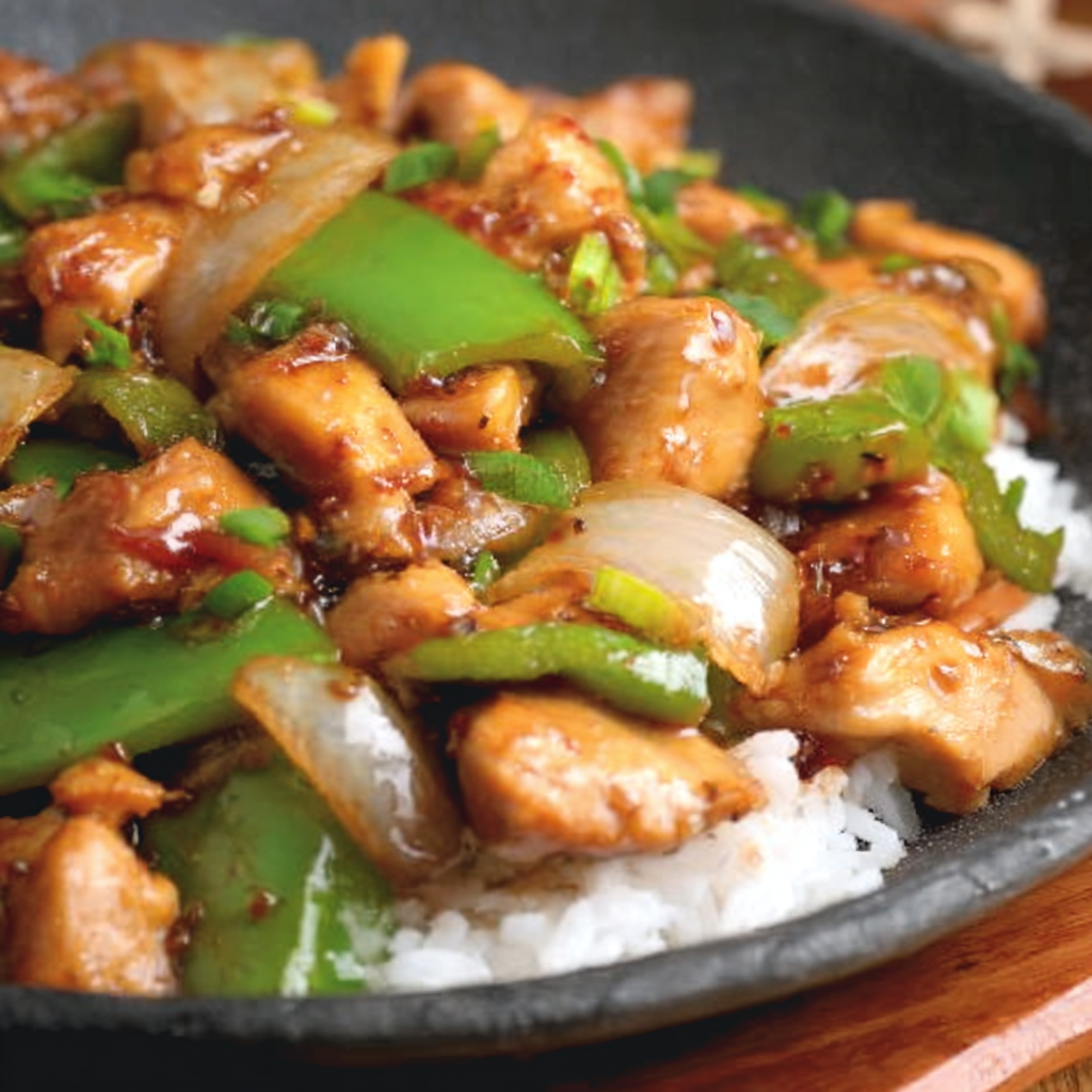 Remove the chicken and set it aside. In the same pan, add red and green bell peppers and stir fry for 3–4 minutes until slightly tender but still vibrant. Add minced garlic during the last 30 seconds to prevent burning.