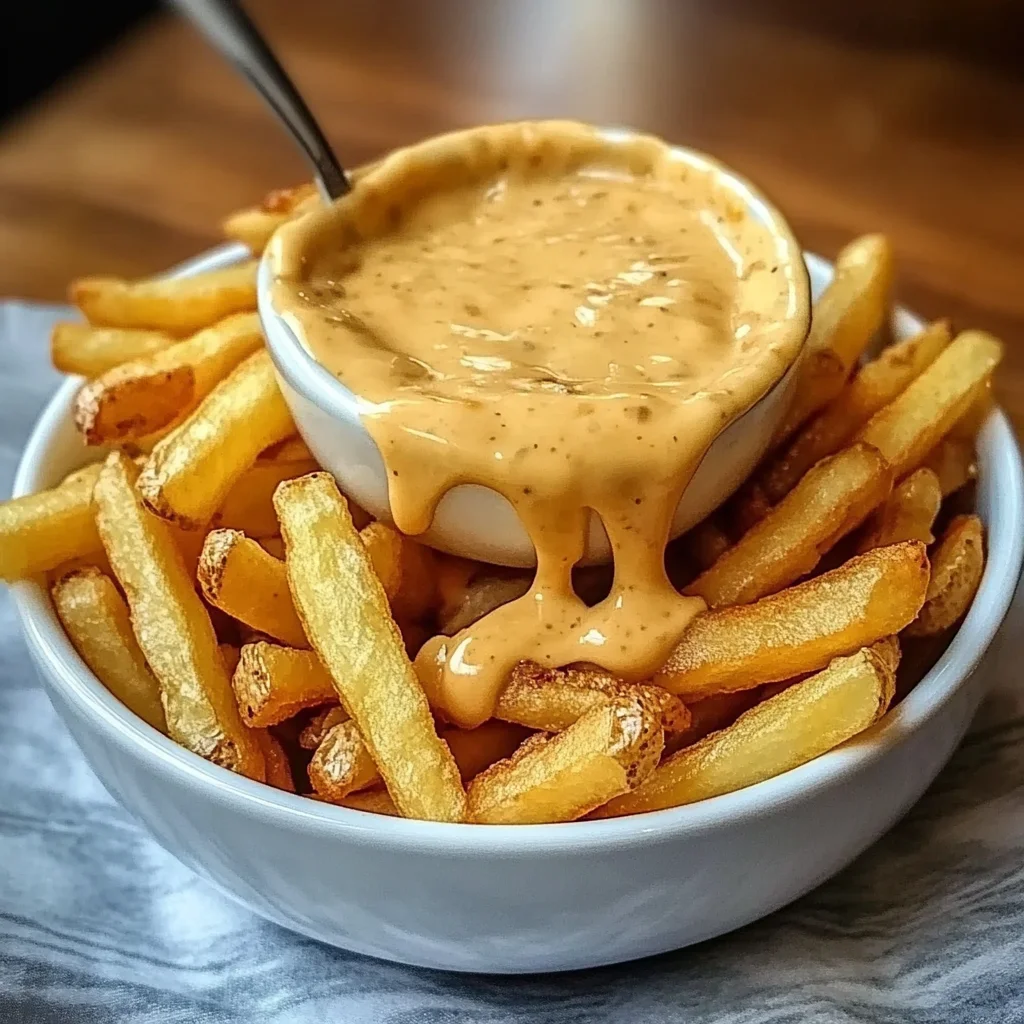 Consistency: It needs to be thick enough to coat fries but thin enough to pour or dip.