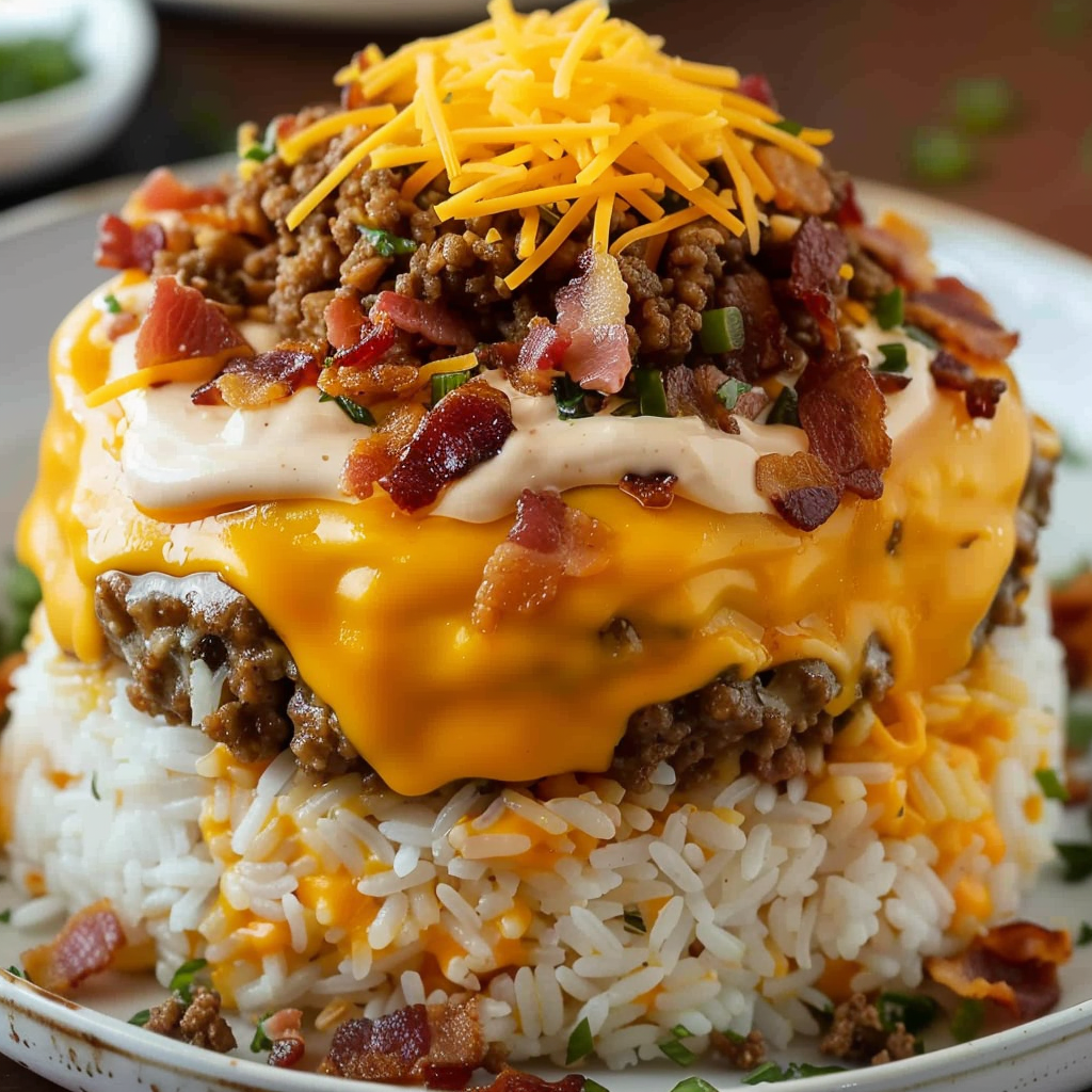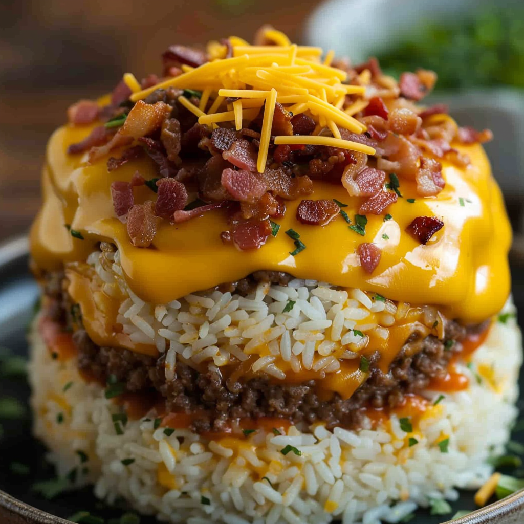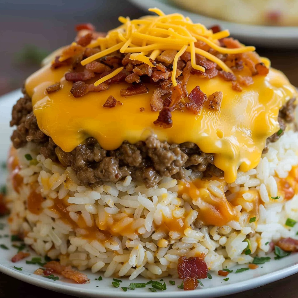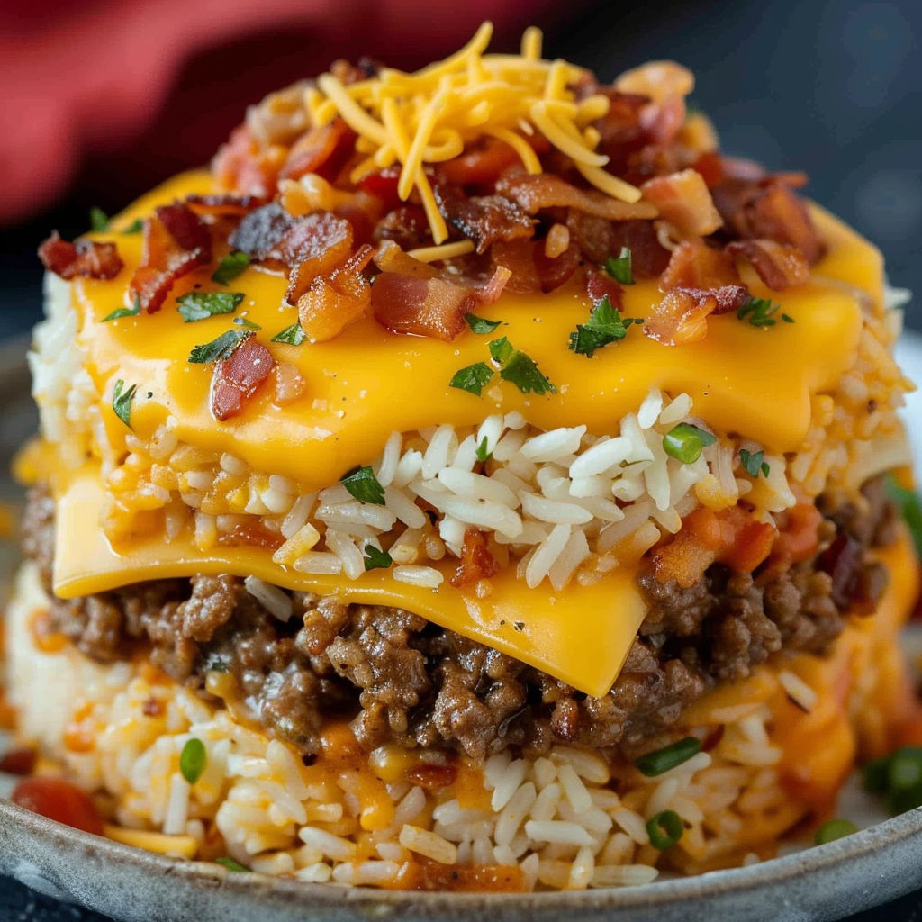 This Bacon Cheeseburger Rice Skillet combines the hearty flavors of a bacon cheeseburger with the comfort of a rice casserole. Made with ground beef, crispy turkey bacon, and cheddar cheese, it’s a quick, satisfying, and budget-friendly one-skillet meal perfect for busy weeknights. Topped with optional pickles and green onions, this dish brings bold burger flavors to your table without the need for buns. Ready in under 30 minutes, it’s ideal for families, meal prep, or anyone craving easy dinners with ground beef.